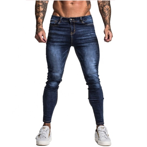 Moda azul Skinny Fit Stretch Denim Non-ripped Plus Size Jeans para hombre para hombres con estilo